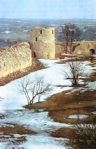 Вид на Изборскую крепость с напольной стороны. |