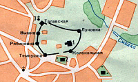 Следует обратить внимание и на древние могилы с исполинскими каменными плитами, расположенные у наружной кромки рва старого города. Специалисты датируют эти плиты XIV-XV веками, а загадочные геометрические рисунки на некоторых из них, называемые "вавилонами", позволили высказать предположение, что "огромная каменная плита с квадратным "вавилоном" может лежать на могиле какого-то неизвестного мастера-строителя, работавшего в этом древнем русском городе в XIV-XV веках."