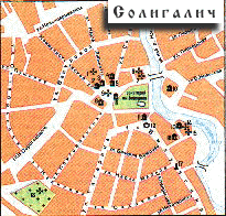 Небольшой старинный русский город Солигалич расположен в Костромской области на правом и левом берегах реки Костромы в 95 км к северу от старинного Галича. Еще в начале XIV в., когда град назывался "Соли Галичския", люди нашли там драгоценные соляные источники и стали вываривать соль, отсюда и пошло нынешнее название города. С XIV по XVIII века Солигалич был крупным центром России по производству соли.