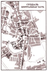 На карте Суздаля появляются прямоугольные кварталы и длинные прямые улицы.